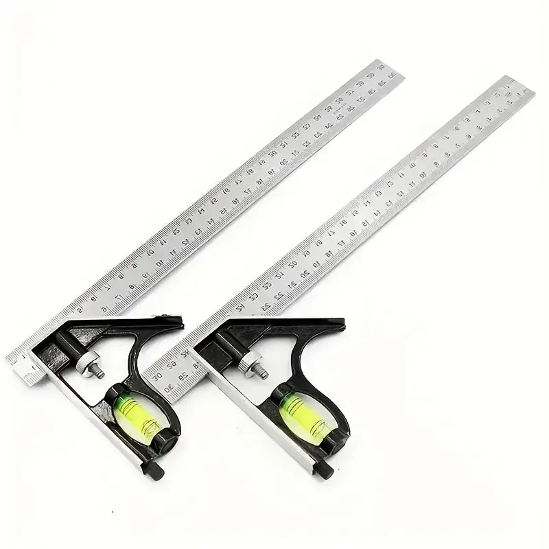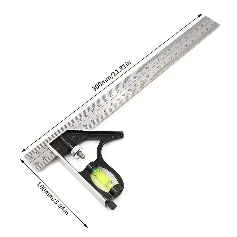 High quality stainless steel with clear and accurate metric/imperial graduations and adjustable head with built-in level bubble. Can be used as an outside try square, depth gauge or scriber at 90° and 45° level.