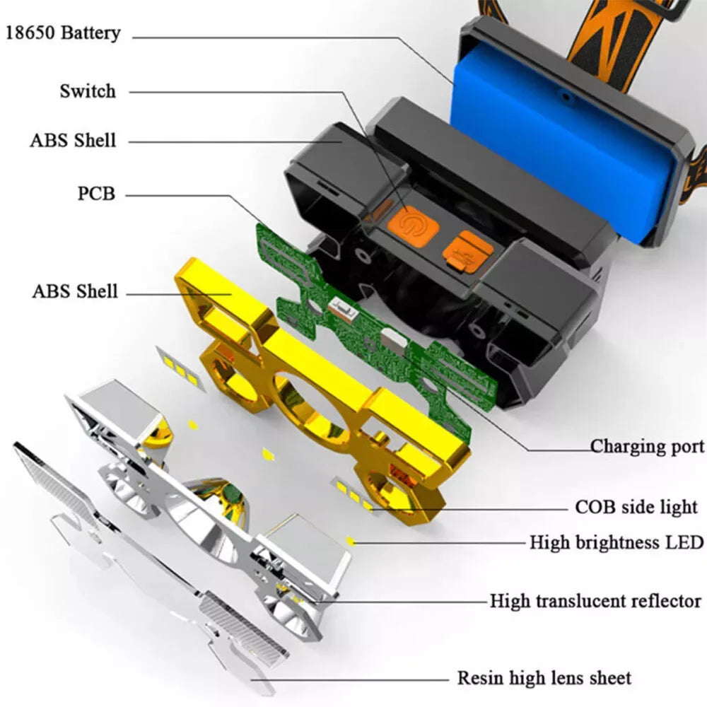 Super Bright 5-LED USB Rechargeable Headlamp – Waterproof Outdoor Head Flashlight for Camping, Fishing & Night Adventures