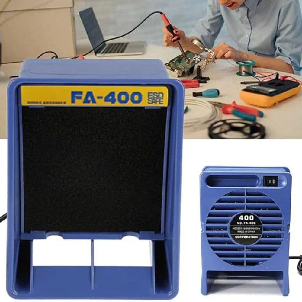 Powered by a premium copper wire motor and a high-performance fan, this compact unit creates strong suction to pull smoke away from your working area. The built-in activated carbon filter sponge helps absorb unwanted fumes and impurities, making it ideal for soldering benches, electronics repairs, and other small indoor workstations.
