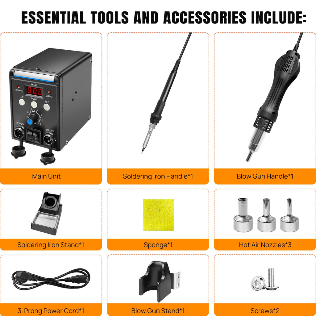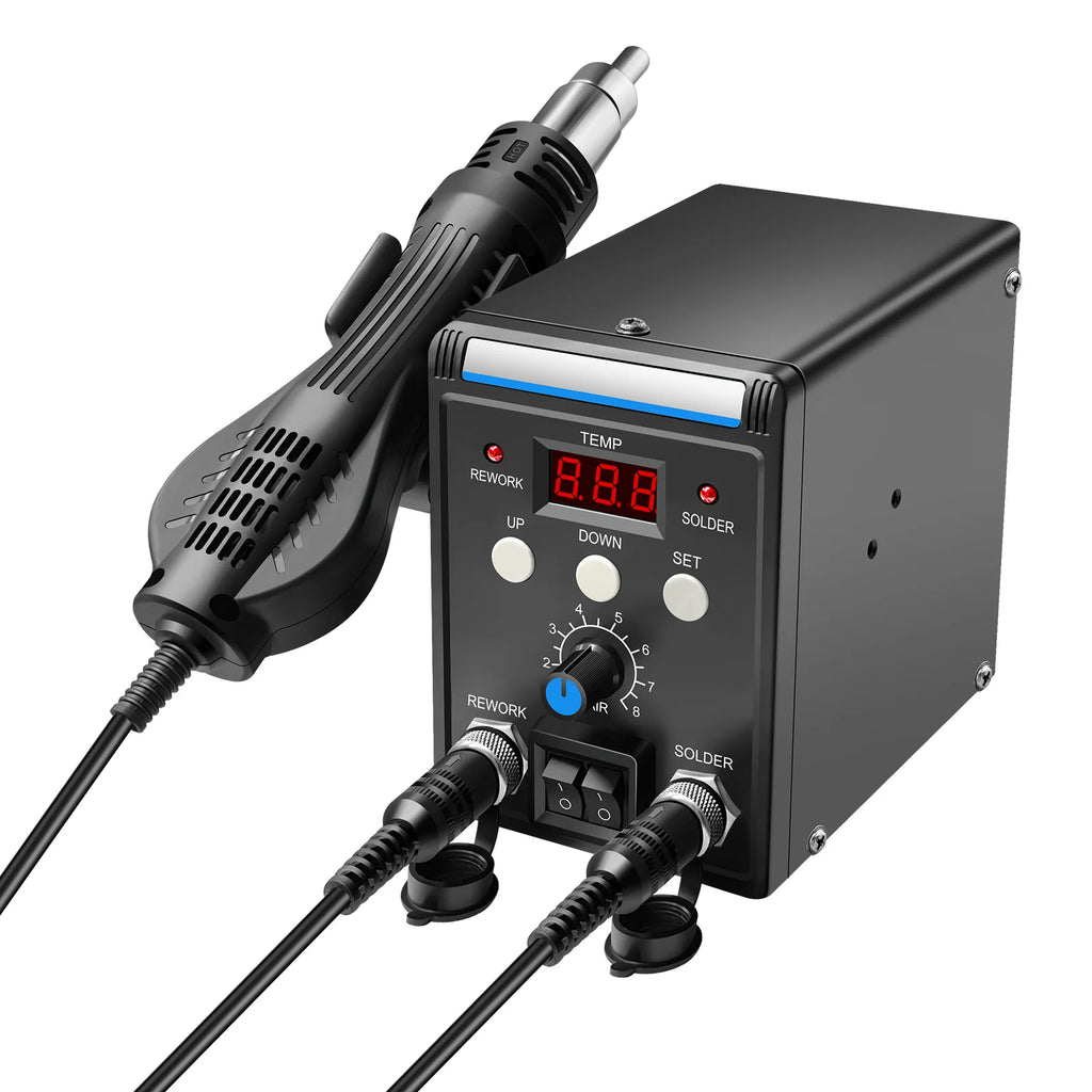 Upgrade your workshop with this Digital Soldering Station Kit with Hot Air Gun, designed for accurate temperature control, safer operation, and reliable performance for electronics repairs, DIY projects, and professional bench work.