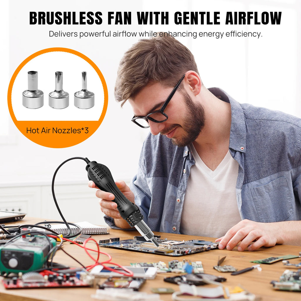 Digital Soldering Station Kit with Hot Air Gun – PID Temperature Control, LCD Display, 100°C–500°C